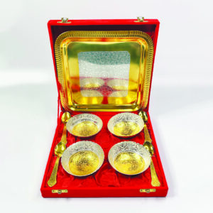 Gold-Plated Bowl Set of 9 with Spoons & Tray in Velvet Box