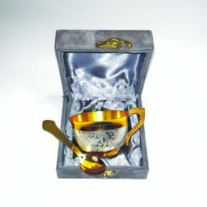 Tea Cup with Spoon in Golden and Silver Metallic Finish